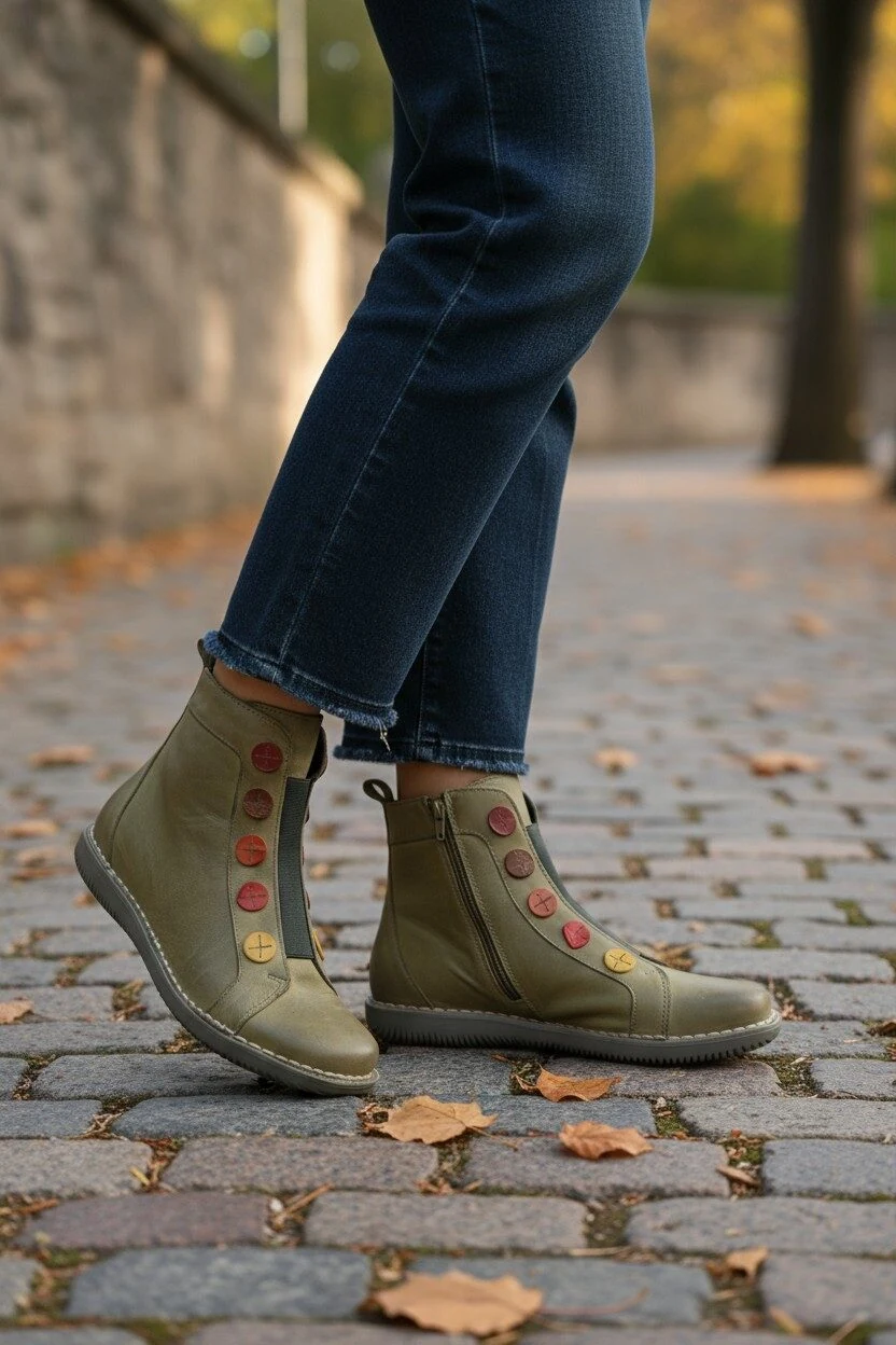 Γυναικεία μποτάκια από τον οίκο Chacal: ανατομικά, κατασκευασμένα εξωτερικά από υψηλής ποιότητας δέρμα, εσωτερικά από ύφασμα, και με πολύ μαλακό πατάκι. Υλικά που αναπνέουν βοηθώντας στην αποφυγή δυσάρεστων οσμών, ενώ παράλληλα καθαρίζονται εύκολα. Προσαρμόζονται στη φόρμα του ποδιού παρέχοντας επιπλέον άνεση. Είναι ανθεκτικά στην καθημερινή χρήση με διάρκεια στο χρόνο.