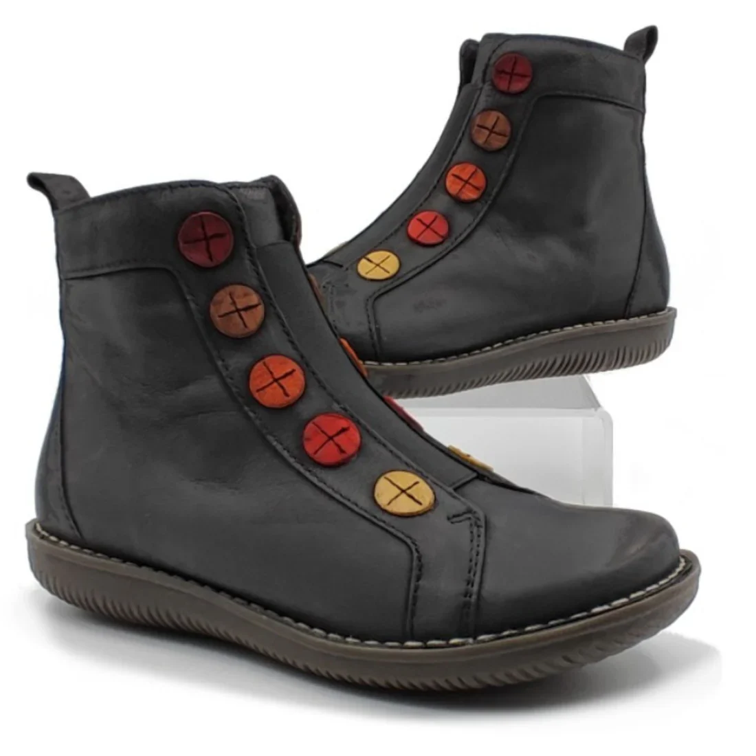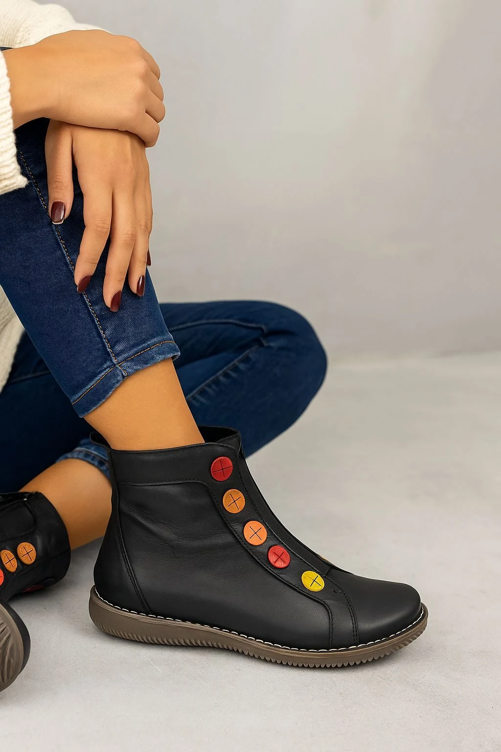 Γυναικεία μποτάκια από τον οίκο Chacal: ανατομικά, κατασκευασμένα εξωτερικά από υψηλής ποιότητας δέρμα, εσωτερικά από ύφασμα, και με πολύ μαλακό πατάκι. Υλικά που αναπνέουν βοηθώντας στην αποφυγή δυσάρεστων οσμών, ενώ παράλληλα καθαρίζονται εύκολα. Προσαρμόζονται στη φόρμα του ποδιού παρέχοντας επιπλέον άνεση. Είναι ανθεκτικά στην καθημερινή χρήση με διάρκεια στο χρόνο.