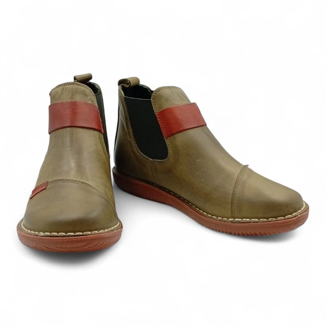 Γυναικεία μποτάκια από τον οίκο Chacal: ανατομικά, κατασκευασμένα εξωτερικά από υψηλής ποιότητας δέρμα, εσωτερικά από ύφασμα, και με πολύ μαλακό πατάκι. Υλικά που αναπνέουν βοηθώντας στην αποφυγή δυσάρεστων οσμών, ενώ παράλληλα καθαρίζονται εύκολα. Προσαρμόζονται στη φόρμα του ποδιού παρέχοντας επιπλέον άνεση. Είναι ανθεκτικά στην καθημερινή χρήση με διάρκεια στο χρόνο.