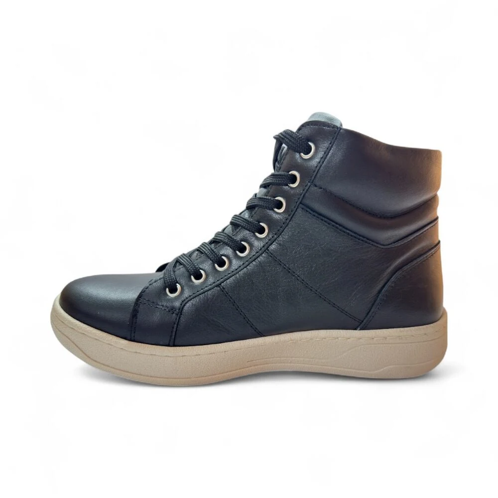 Safe Step 25410 Μαύρο Γυναικείο Δερμάτινο Ανατομικό Μποτάκι με Κορδόνι και Φερμουάρ