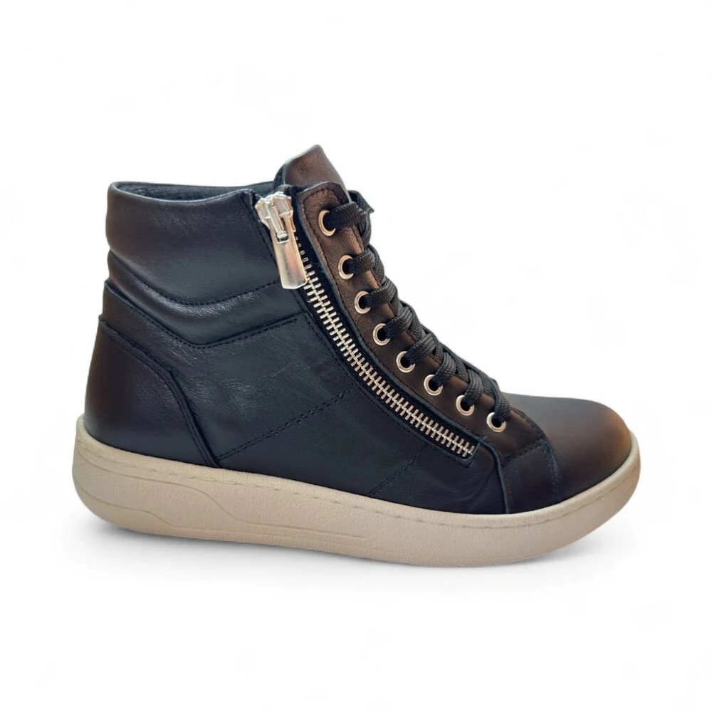 Γυναικεία δερμάτινα μποτάκια της νέας συλλογής Safe Step, με κανονική φόρμα για άνετη και σταθερή εφαρμογή. Διαθέτουν κλασικά κορδόνια και πρακτικό φερμουάρ στο πλάι που διευκολύνει την καθημερινή χρήση.